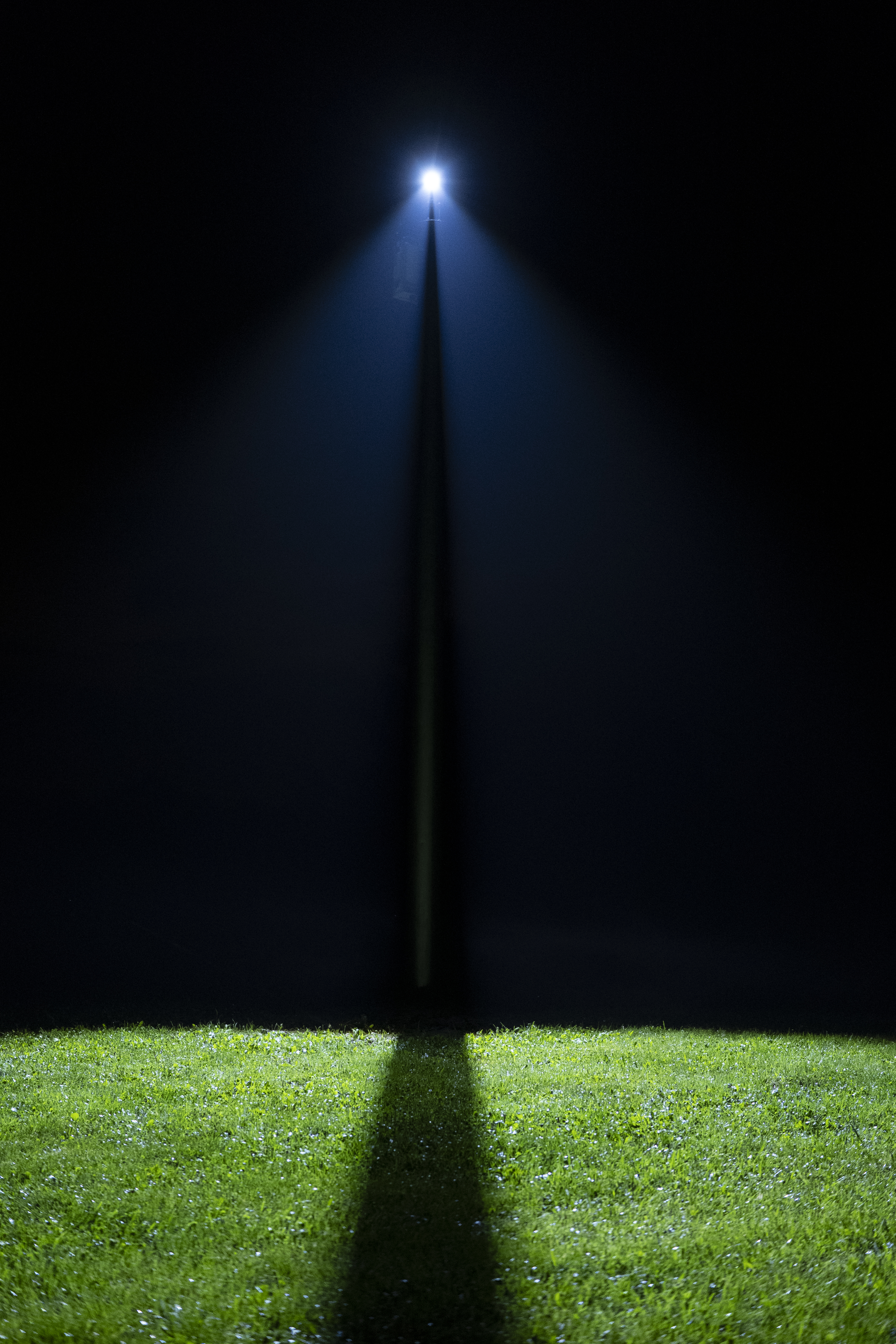 Afterimage is a light sculpture built from a gobo projector, motor, electronics, and reclaimed pole. By day, its slender form casts a shifting shadow that marks time and movement. At sunset, it uses an implementation of a Solar Positioning Algorithm to calculate that day’s path of the sun in reverse - slowly retracing the movement of the shadow through a motor-controlled projector. Through nearly imperceptible movement, the sculpture reanimates the dialogue between sun, earth, and the structure itself with man-made light. By merging digital tools with the natural rhythms of time’s passage, Afterimage gives form to the ephemeral, reflecting on how perception, memory, and technology shape our experience of time and space.